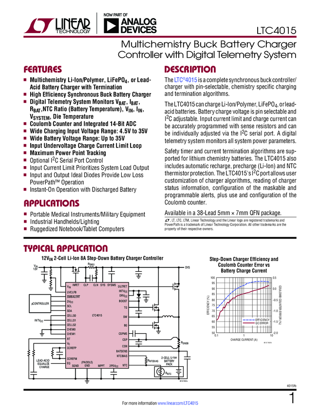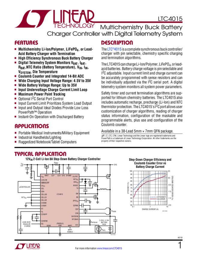 Multichemistry Buck Battery Charger Controller with Digital Telemetry System