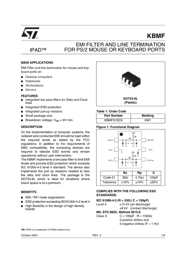 2-line EMI filter and ESD protection with Termination and R pull-up for keyboards