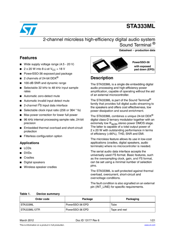 Sound Terminal 2-channel microless high-efficiency digital audio system