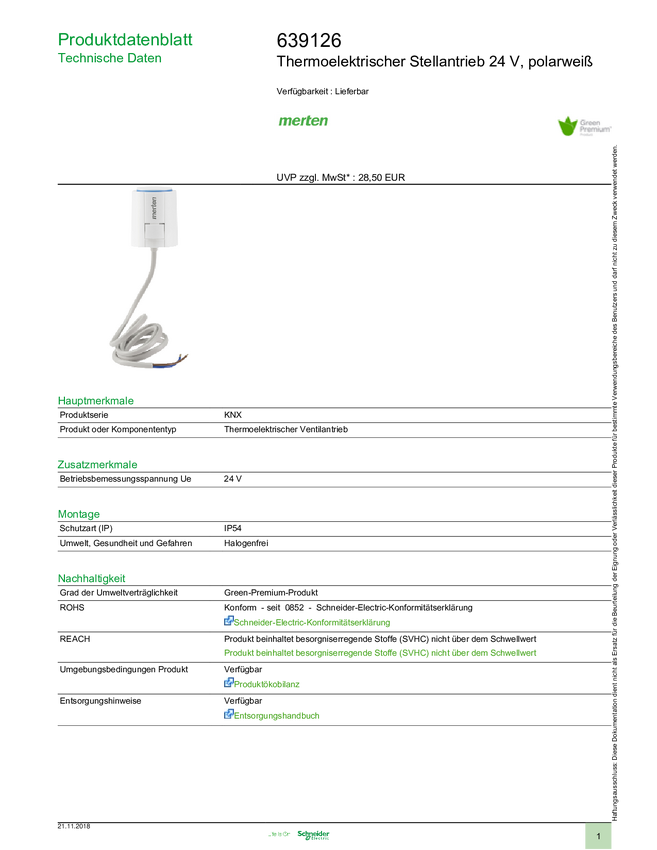 Aktuator termiczny NC Merten 639126 1 szt.