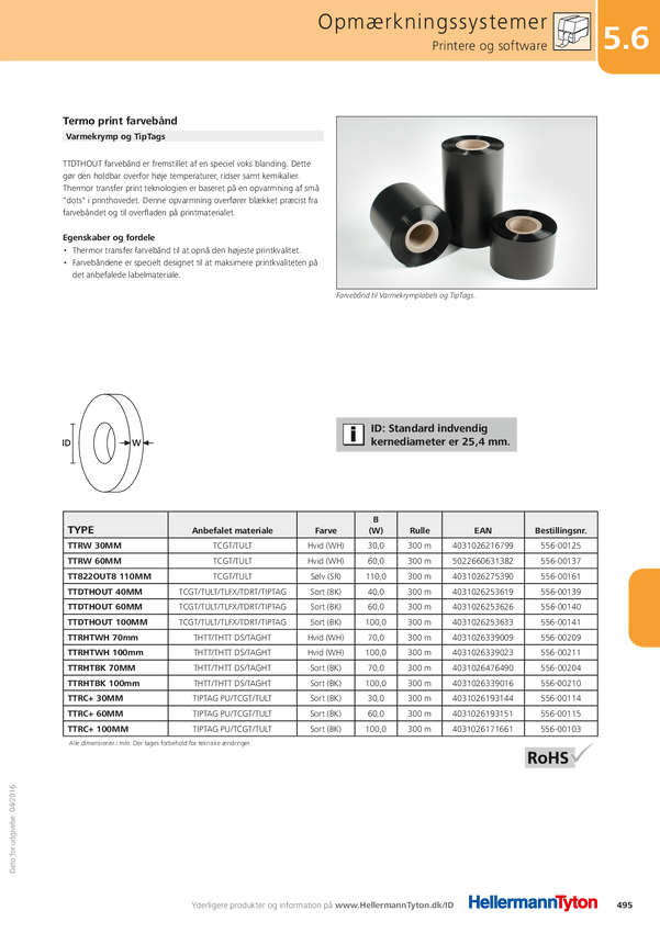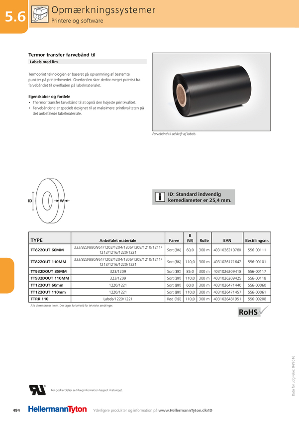 Taśma kolorowa do drukarki termotransferowej HellermannTyton TT822OUT8-PET-ML 556-00161, 1 szt.