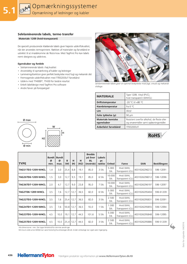 Etykiety do drukarki termotransferowej HellermannTyton TAG10TD2-1209-WHCL-1209-CL/WH 596-12090, montaż: przyklejanie, 1