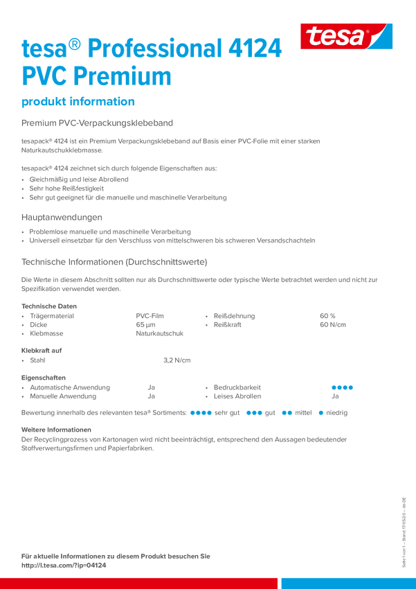Taśma pakowa tesa tesapack® 4124 04124-00342-00 PVC (D x S) 66 m x 50 mm 66 m 1 szt.