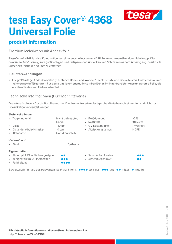 Folia ochronna tesa tesa Easy Cover® 04368-00011-01 (D x S) 33 m x 30 cm 33 m 1 szt.