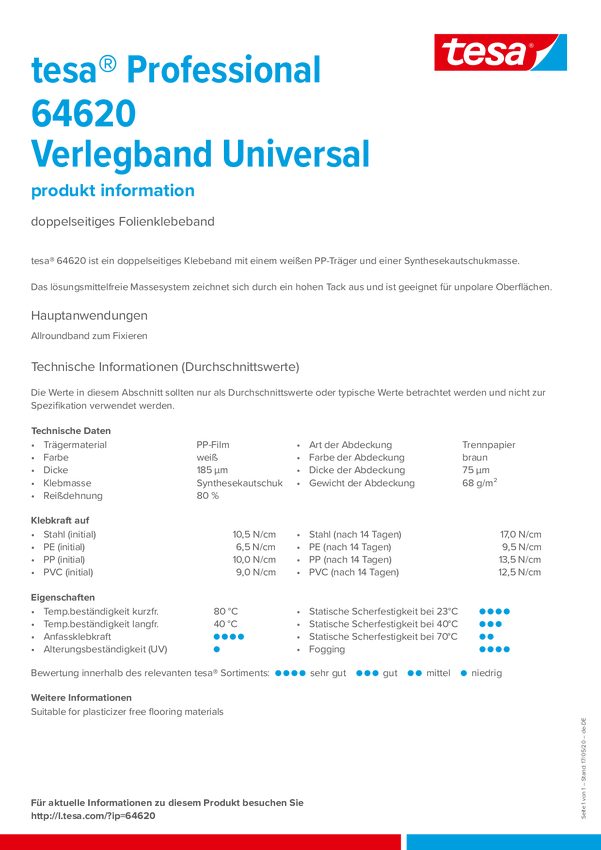 Taśma do wykladzin tesa tesa® Professional 64620-00018-11 UNIVERSAL PERMANENT (D x S) 10 m x 50 mm 10 m 1 szt.