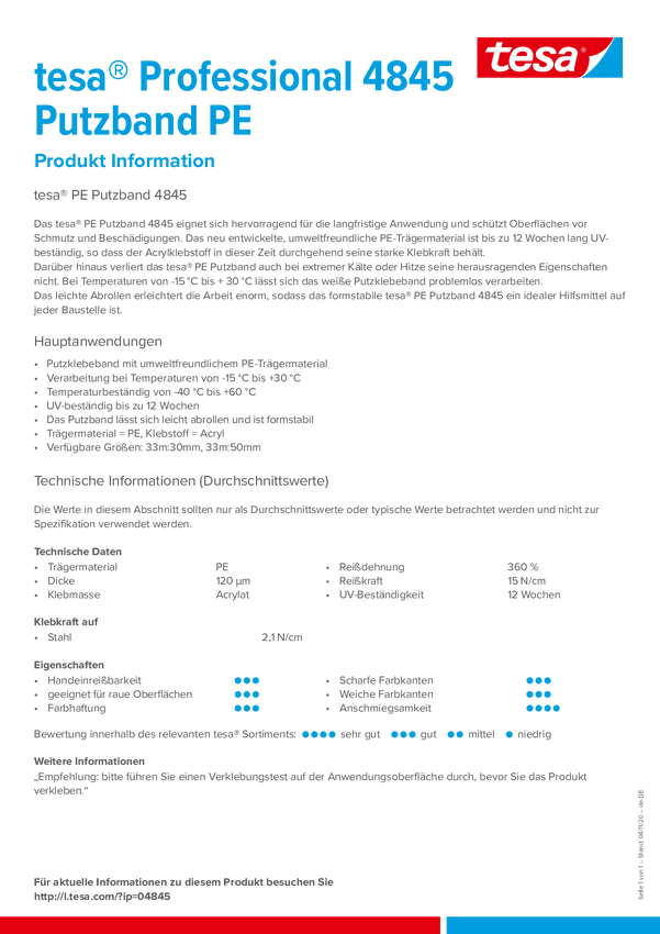 Taśma tynkarska tesa tesa® Professional 04845-00000-00 PE (D x S) 33 m x 30 mm 33 m 1 szt.