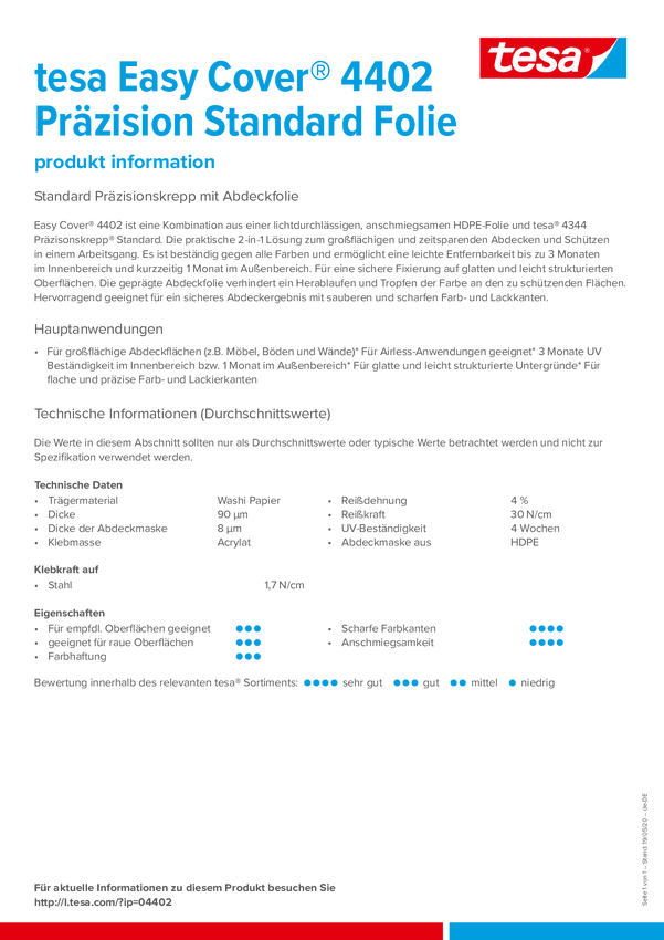 Folia ochronna tesa tesa Easy Cover® 04402-00003-01 (D x S) 33 m x 55 cm 33 m 1 szt.