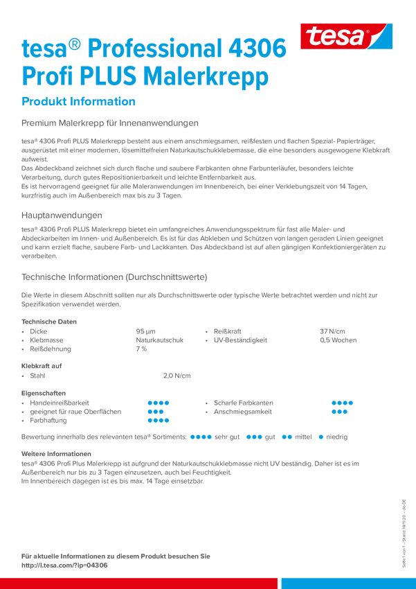 Taśma maskująca tesa tesakrepp® 04306-00042-02 PREMIUM (D x S) 50 m x 19 mm 50 m 1 szt.