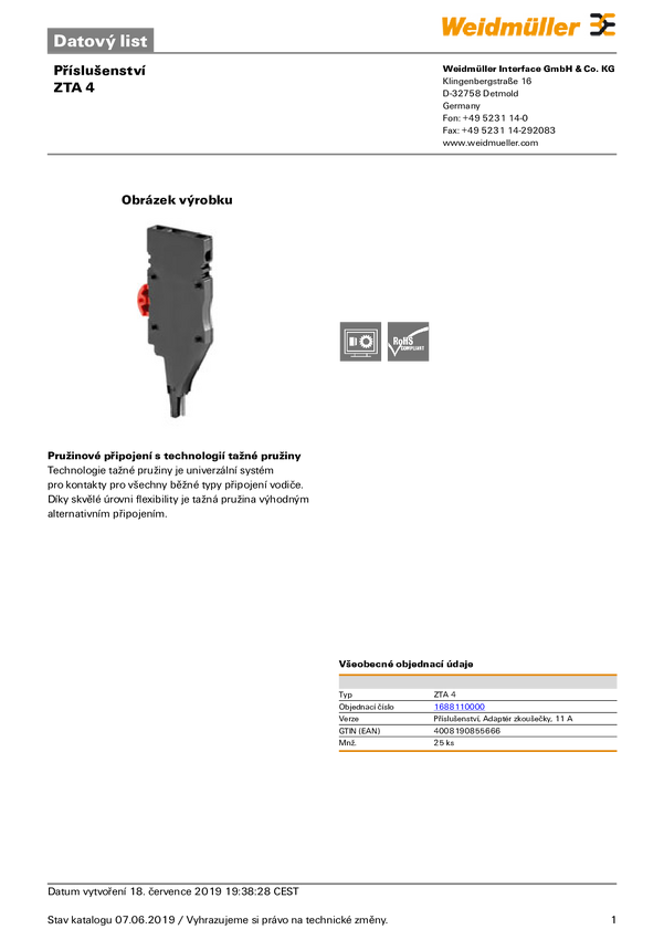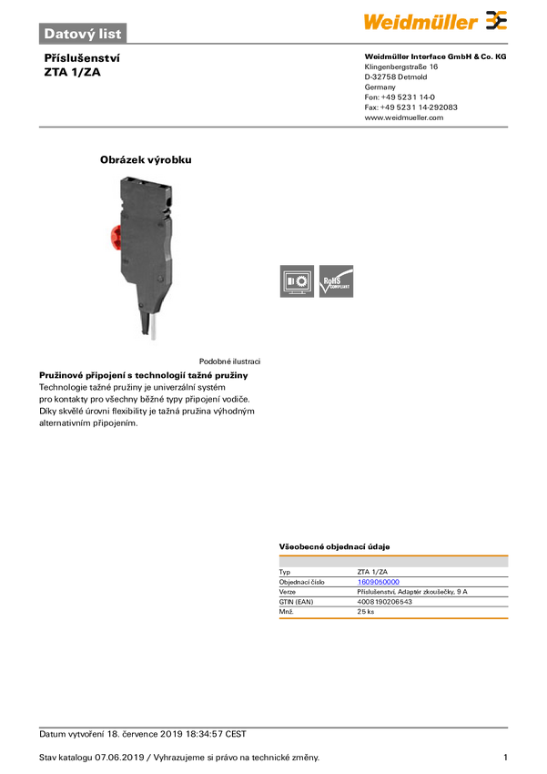 Adapter testowy Weidmüller ZTA 1/ZA 1609050000, 25 szt.