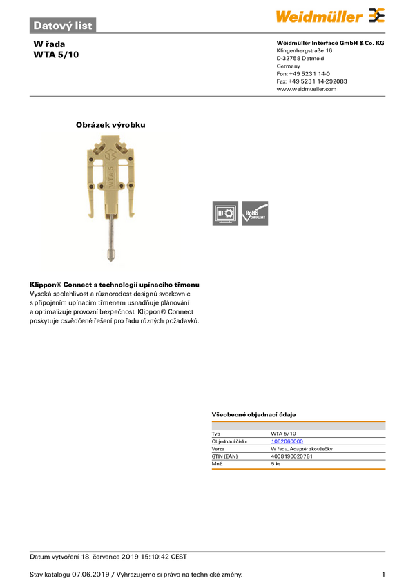 Seria W, Akcesoria, Adapter testowy WTA 7 WSI6 Weidmüller 1650210000 Zawartość: 25 szt.