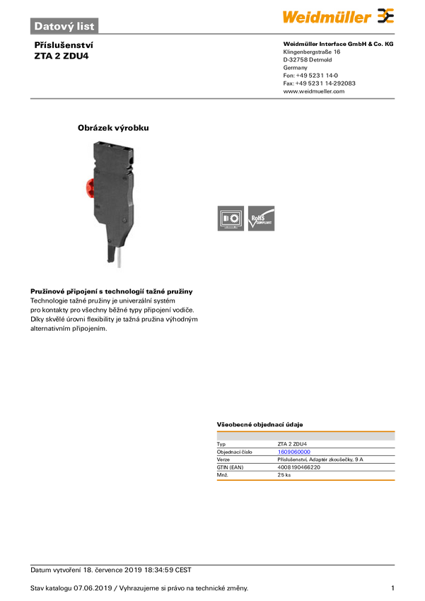 Adapter testowy, Znamionowe napięcie sterowania: ZTA 2 ZDU4 Weidmüller 1609060000 Zawartość: 25 szt.