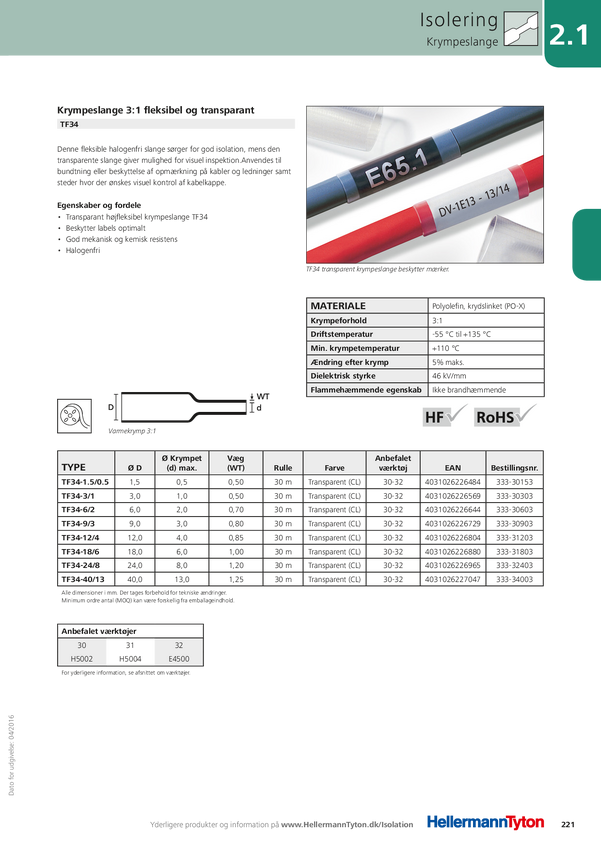 HellermannTyton 333-34003 Rurka termokurczliwa bez kleju TF34-40/13-PO-X-CL, 3:1, od 40 mm do 13 mm, 1 m