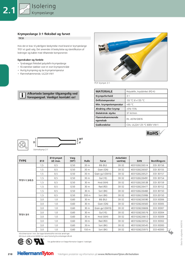 HellermannTyton 333-34000 Rurka termokurczliwa bez kleju TF31-40/13-PO-X-BK, 3:1, od 40 mm do 13 mm, 1 m