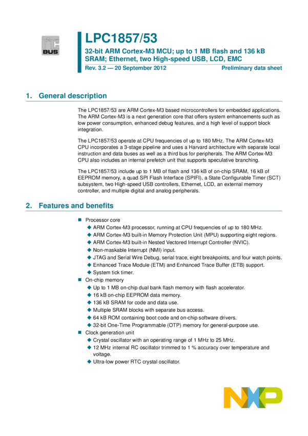 MCU 32-Bit LPC1800 ARM Cortex M3 RISC 1MB Flash 3.3V 180-Pin TFBGA