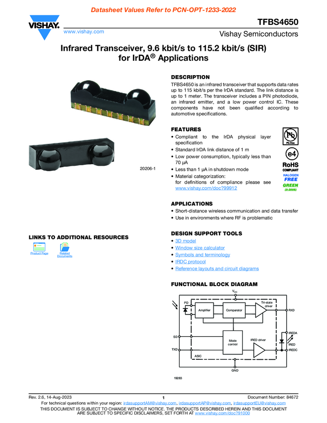 Infrared Transceiver, 9.6 kbit/s to 115.2 kbit/s (SIR) for IrDA® Applications