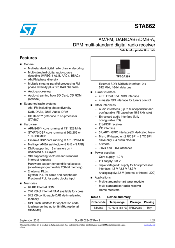 Digital Radio Receiver OFDM 1.2V/2.5V/3.3V 289-Pin TFBGA Tray