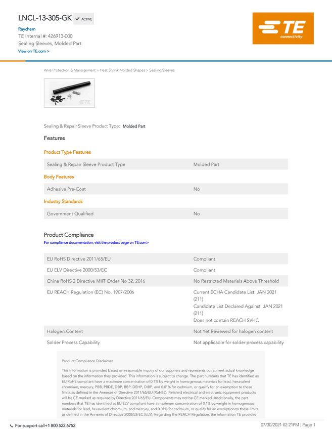 TE Connectivity TE RAY Tubing Elastomers TFIT 7730454002, 15 szt.