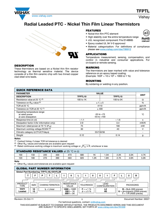 Radial Leaded PTC - Nickel Thin Film Linear Thermistors