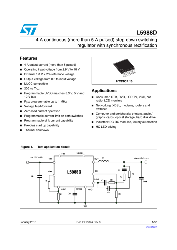 4 A continuous (more than 5 A pulsed) step-down switching regulator with synchronous rectification