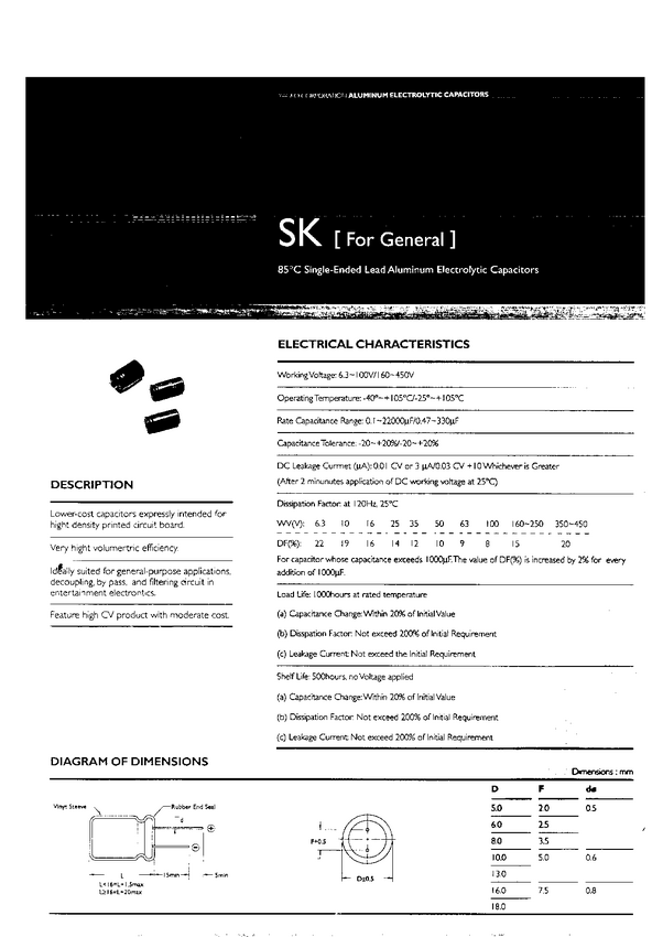 Kondensator elektrolityczny, 22 uF, 63/70 V, RM 2.5 mm