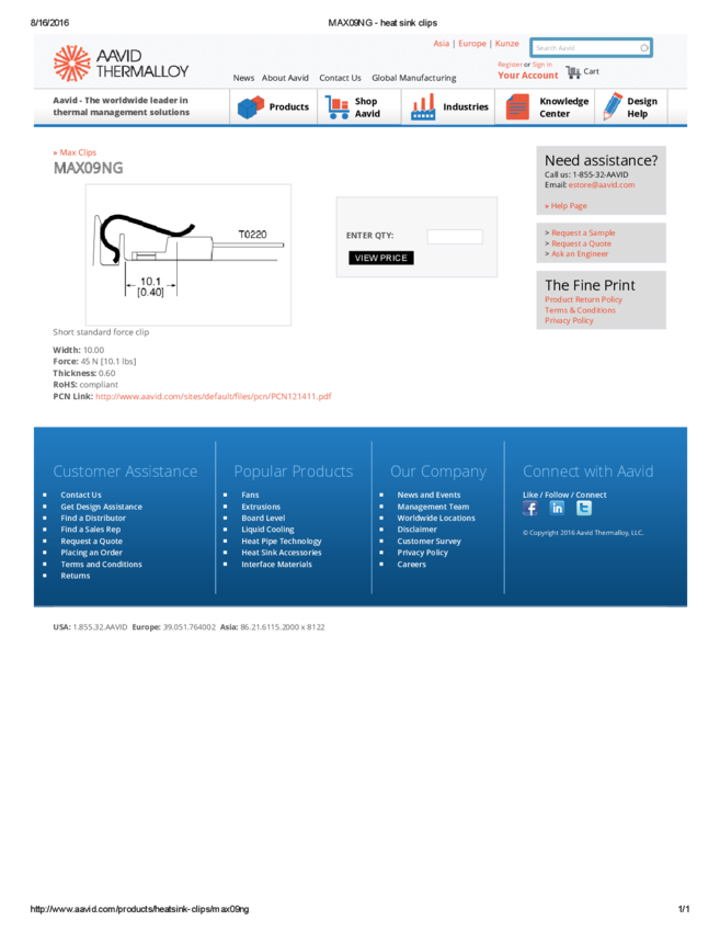 Thrml Mgmt Access Heat Sink Clip Copper Alloy