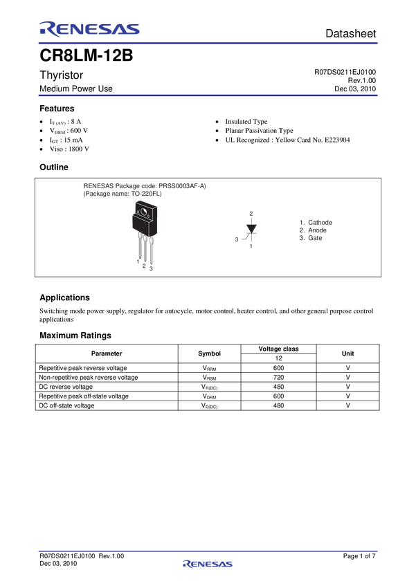 Medium Power Phase Control Thyristors (Stud Version), 10 A