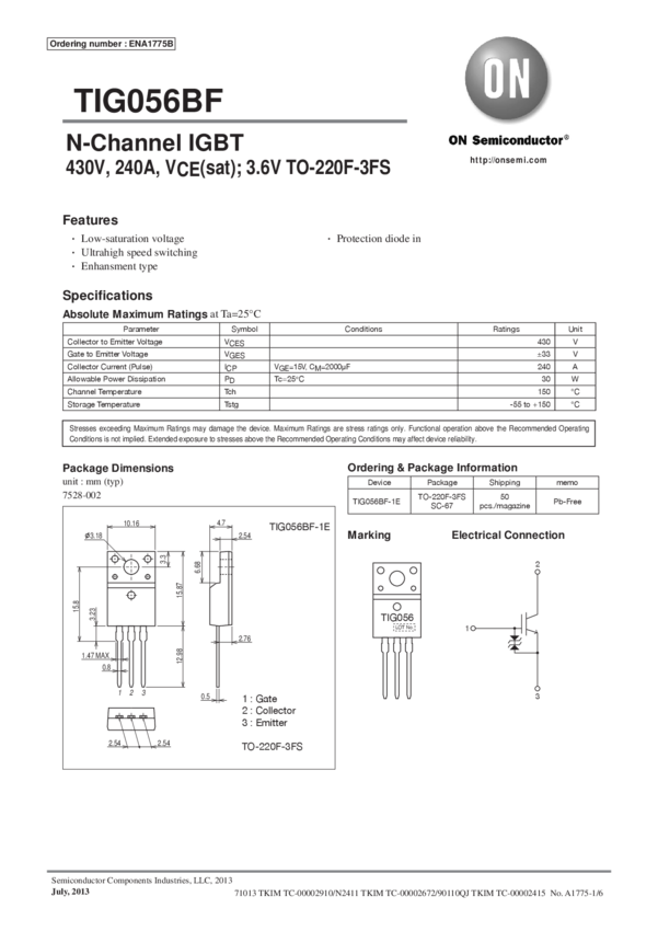 Trans IGBT Chip N-CH 430V 240A 3-Pin TO-220F-3FS Bulk