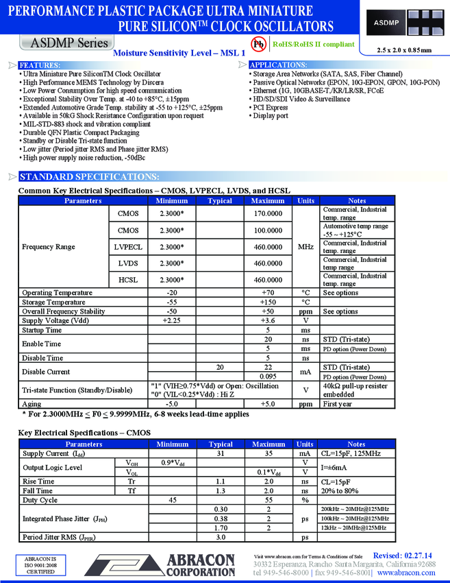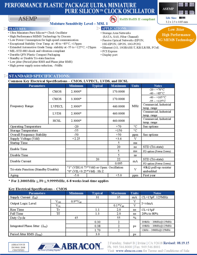 TIGHT STABILITY INDUSTRIAL TEMP 3RD GEN. HIGH PERFORMANCE LO