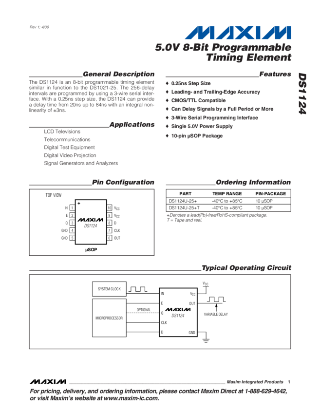 DS1123L 3.3V, 8-Bit, Programmable Timing Element