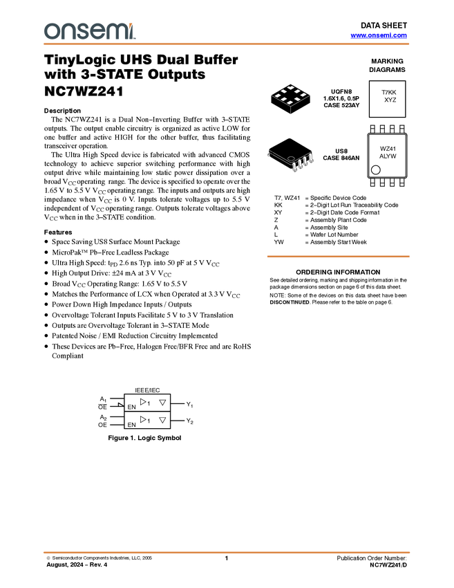TinyLogic UHS Dual Buffer with 3-STATE Outputs
