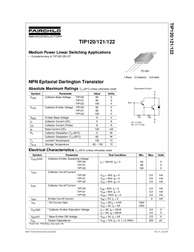 Tranzystor NPN-DARL, 5A, 100V, TO220