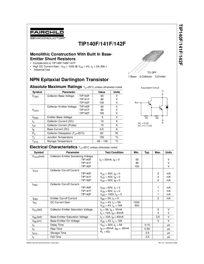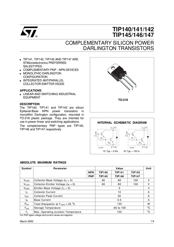 10 A, 100 V NPN Epitaxial Darlington Power Bipolar Junction Transistor