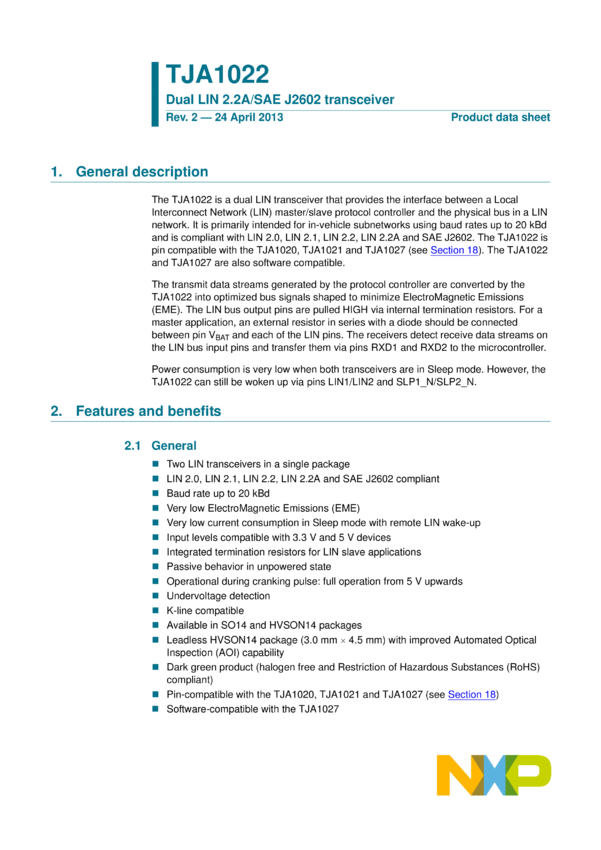 LIN 2.2A/SAE J2602 transceiver with TXD dominant timeout