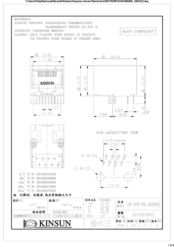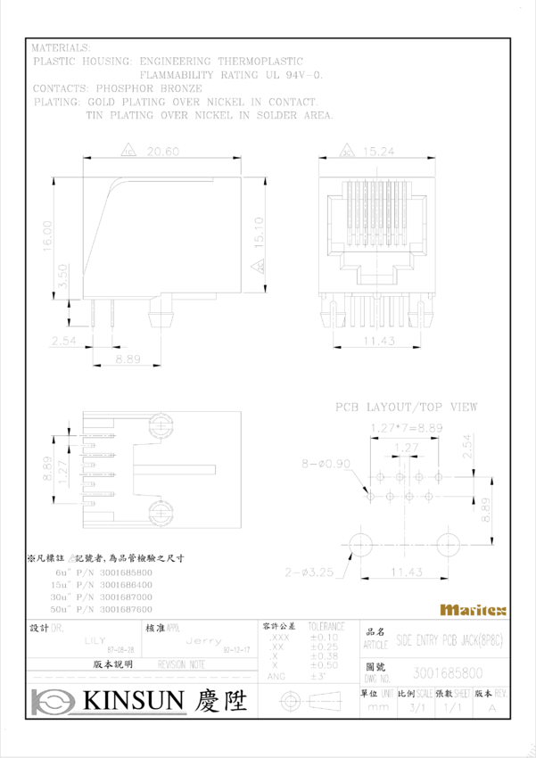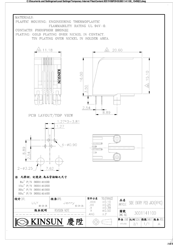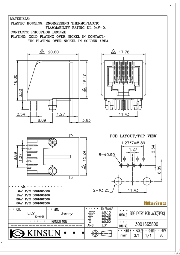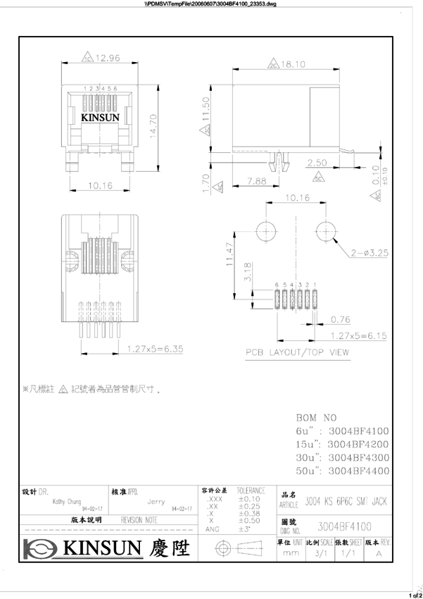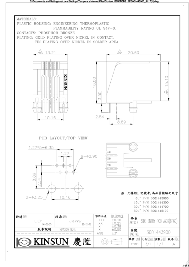 Gniazdo , 4-stykowe, gabaryt 6, styki 6μ" Au, KINSUN