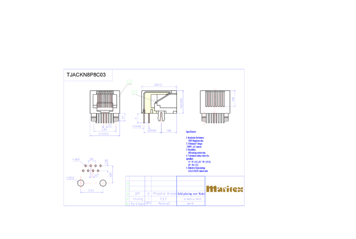 Gniazdo , 8-stykowe, gabaryt 8, styki, 3μ" Au