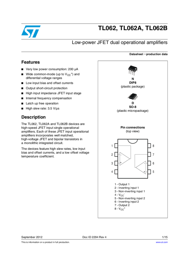Wzmacniacz operacyjny JFET, niski pobór mocy, DIL8