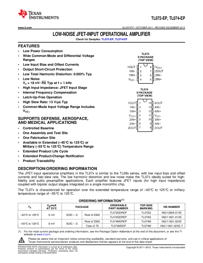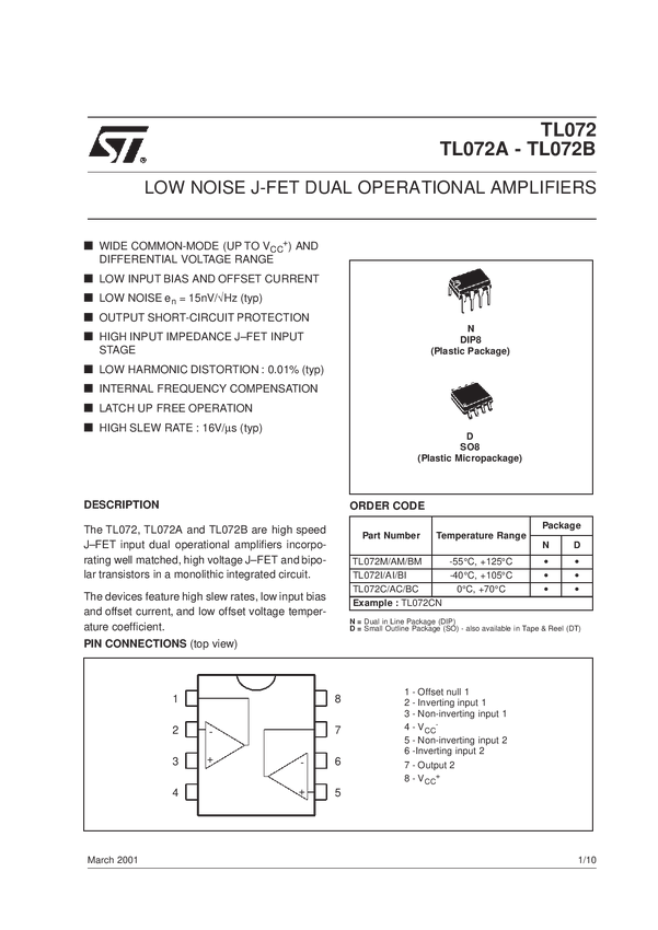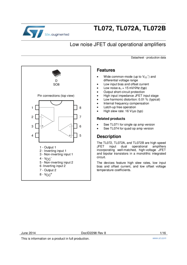 Wzmacniacz operacyjny JFET, nisko-szumowy, DIL8