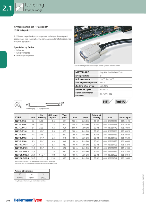 HellermannTyton 302-30240 Rurka termokurczliwa bez kleju TL27-2.4/1.2-PO-X-BK, 2:1, od 2.40 mm do 1.20 mm, 1 m