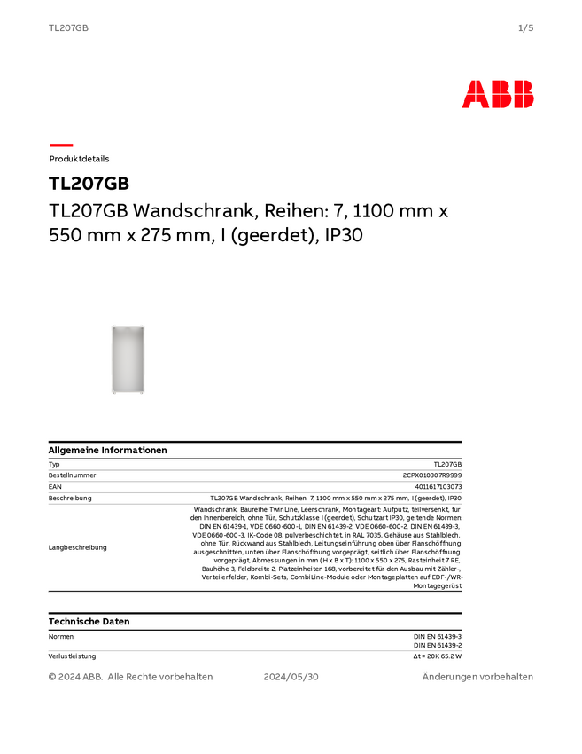 Striebel & John 2CPX010342R9999 TL207SB Pusta szafka nadtynkowy Ilość rzędów = 7 Content 1 szt.