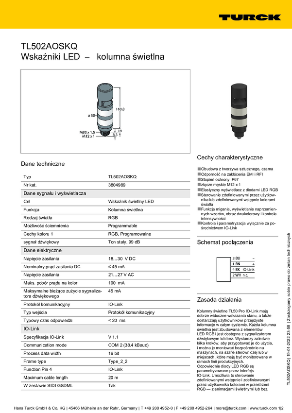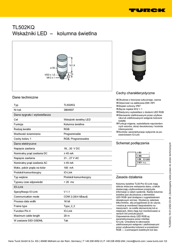 Kolumna sygnalizacyjna Turck TL502AKQ 3804943 1 szt.