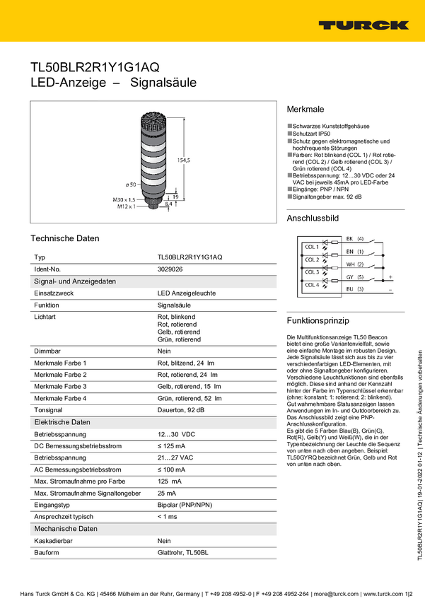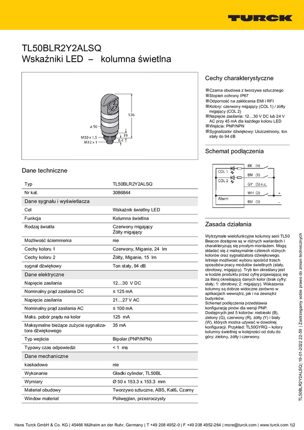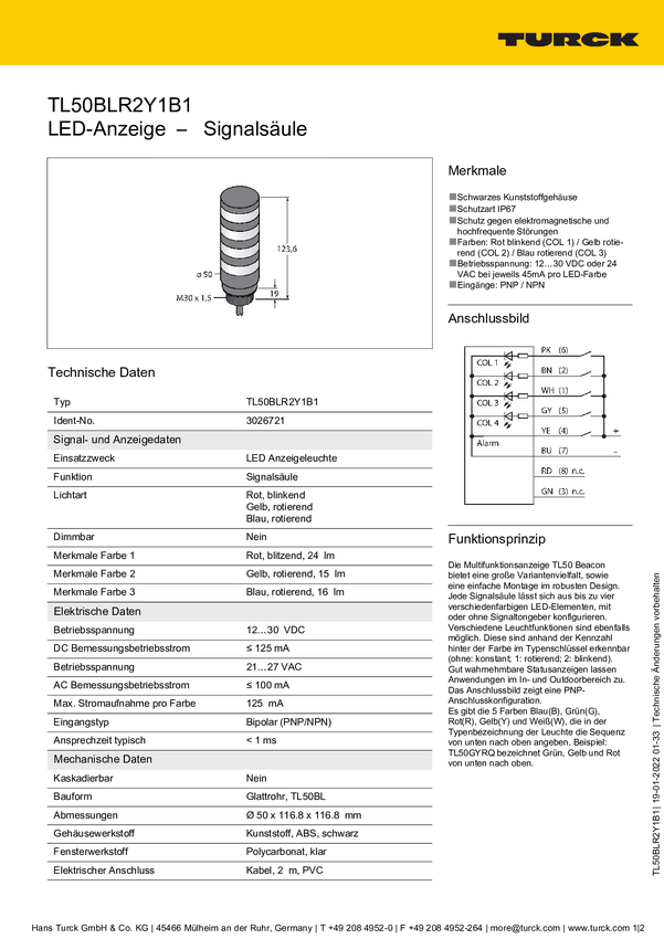 Sygnalizator łączony Turck TL50BLR2Y1GB2AQ