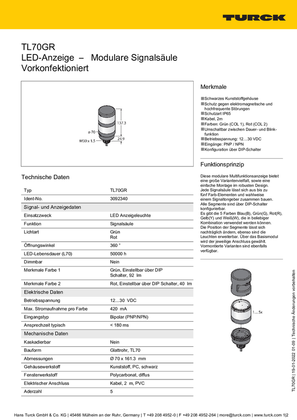 Kolumna sygnalizacyjna Turck TL70GR 3092340 1 szt.