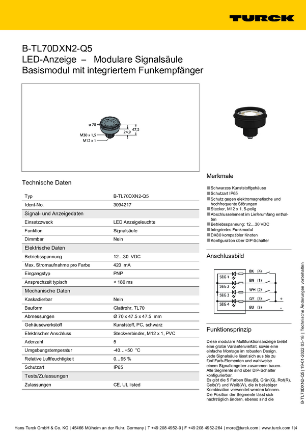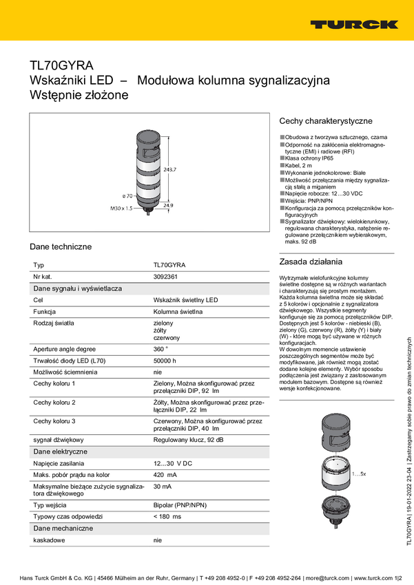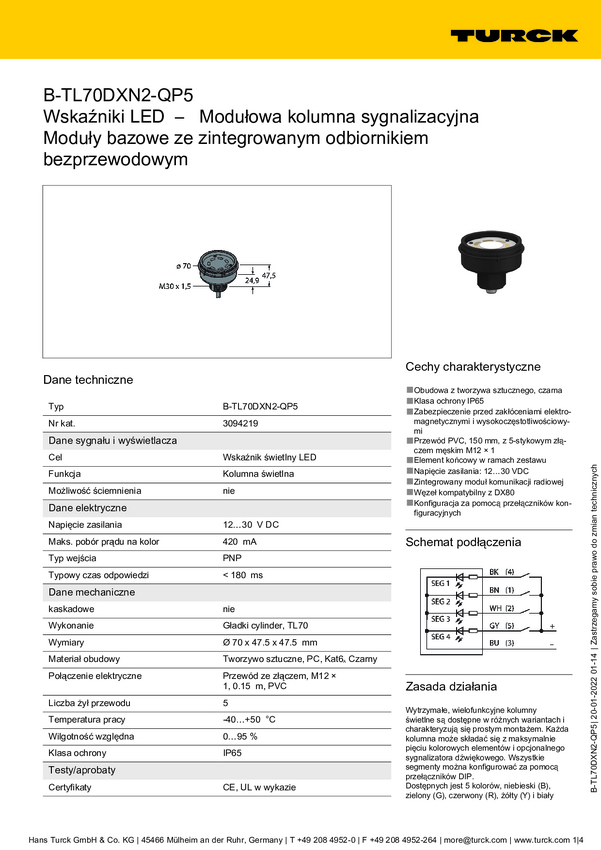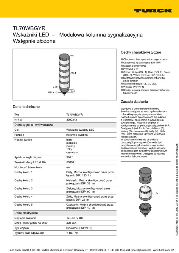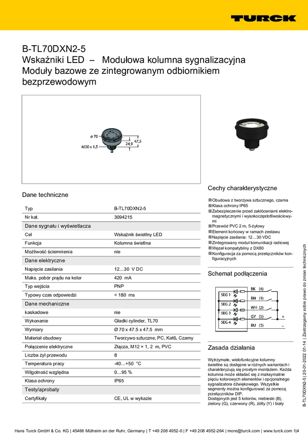 Kolumna sygnalizacyjna Turck B-TL70DXN2-QP5 3094219 1 szt.