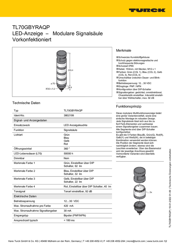 Kolumna sygnalizacyjna Turck TL70WBORAPQ 3805659 1 szt.