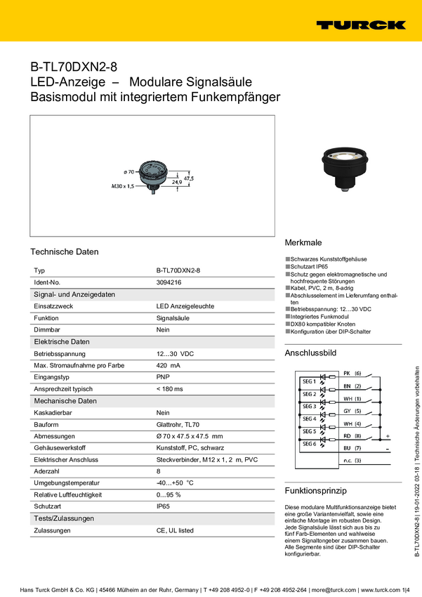 Kolumna sygnalizacyjna Turck B-TL70DXN2-8 3094216 1 szt.