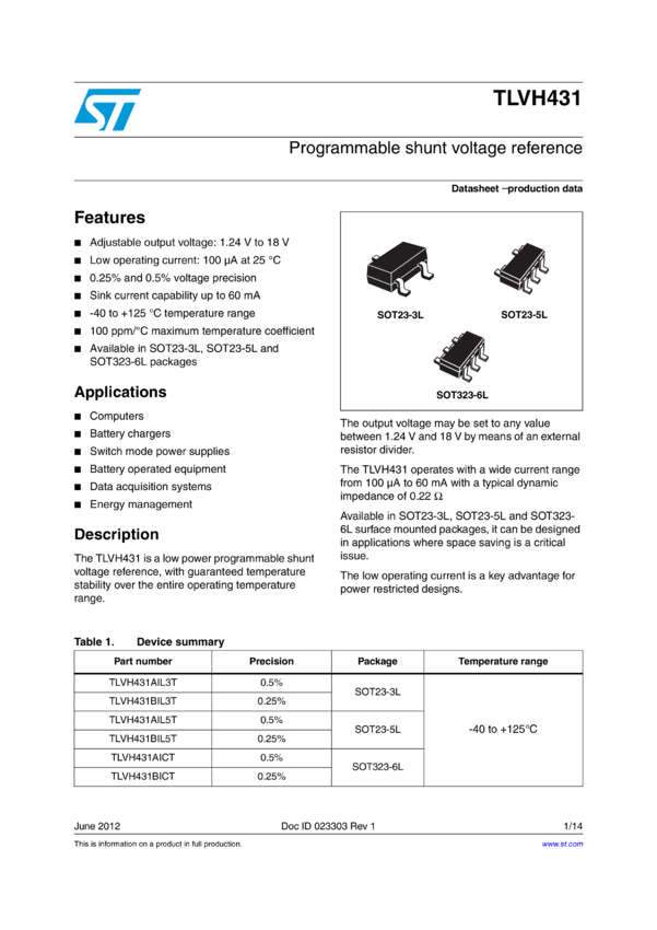 V-Ref Adjustable 1.24V to 6V 15mA 5-Pin SOT-23 T/R
