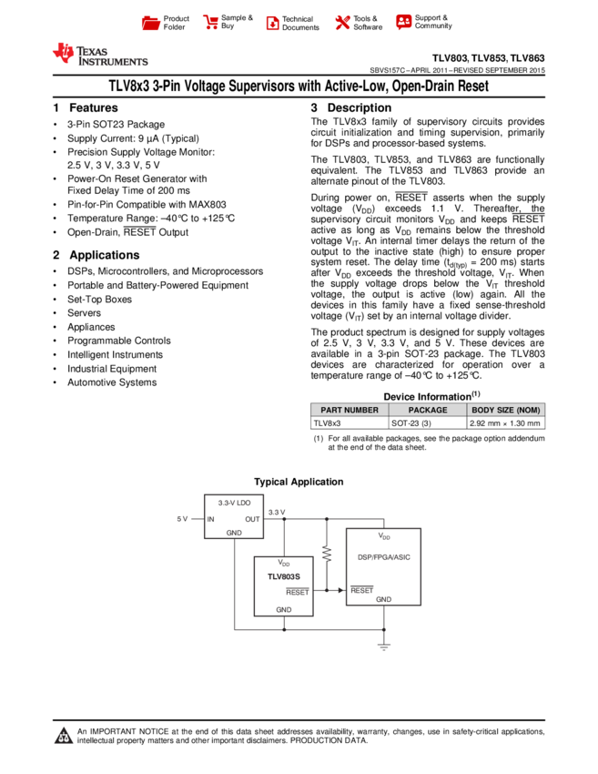 Volt Supervisor Voltage Supervisory 3.3V 3-Pin SOT-23 T/R