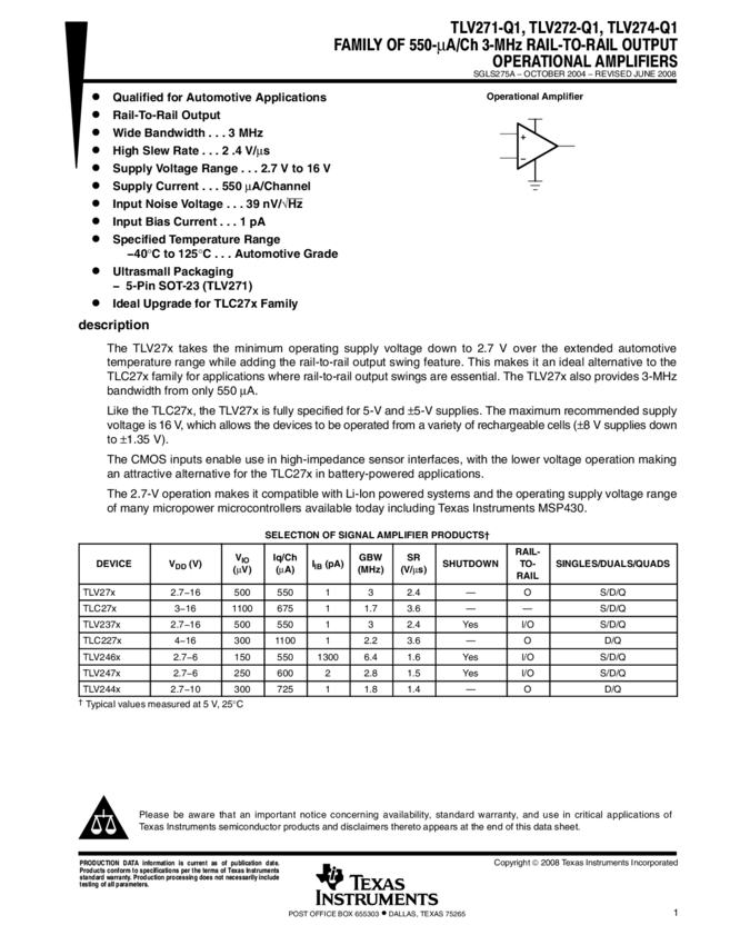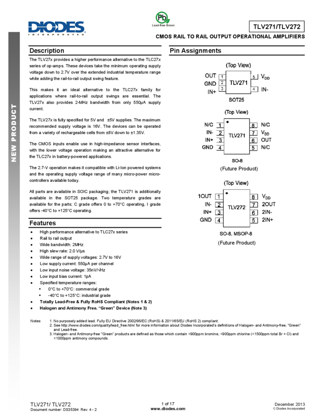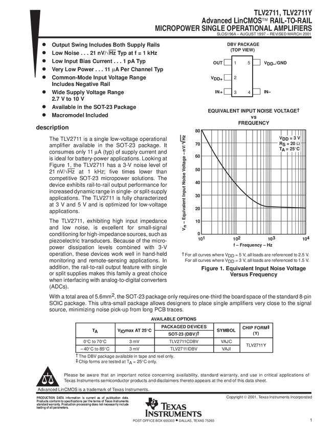 Operational Amplifier, 3MHz, Low power, CMOS Op-Amp