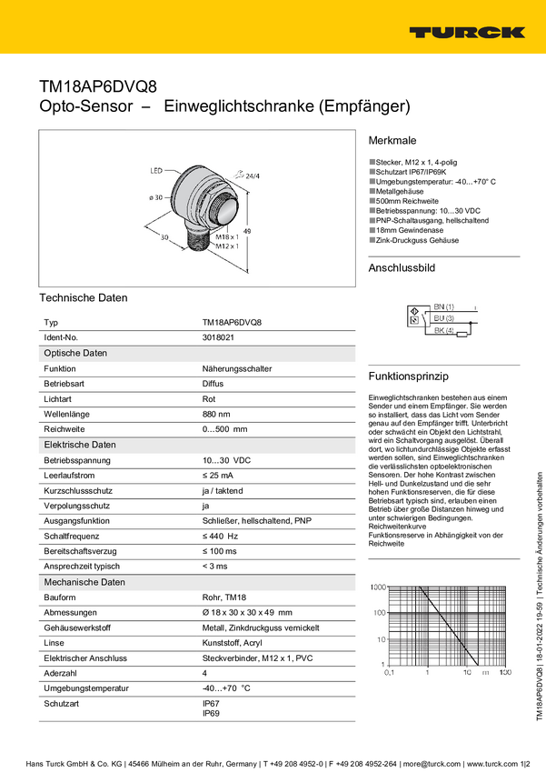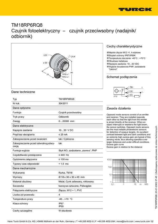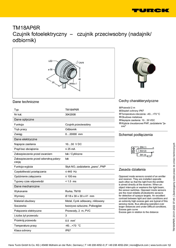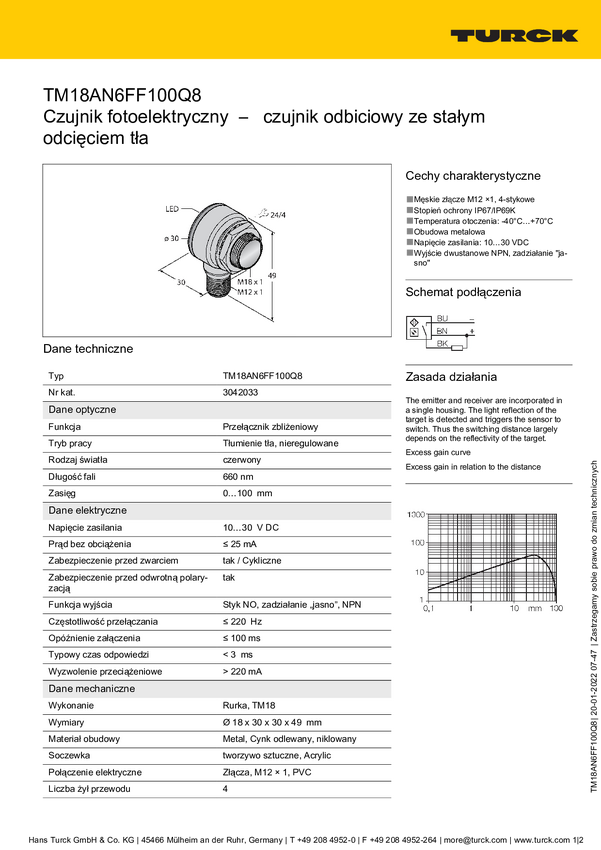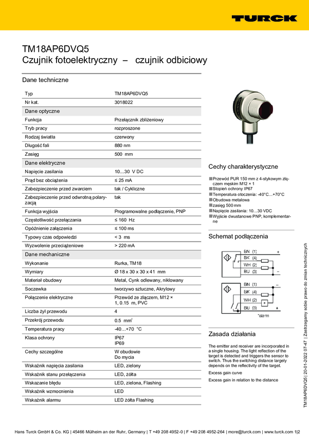 Czujnik dyfuzyjny Turck TM18AP6DVQ5 3018022 1 szt.