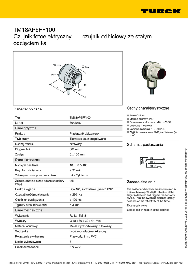 Czujnik dyfuzyjny Turck TM18VP6FF100 3042041 1 szt.